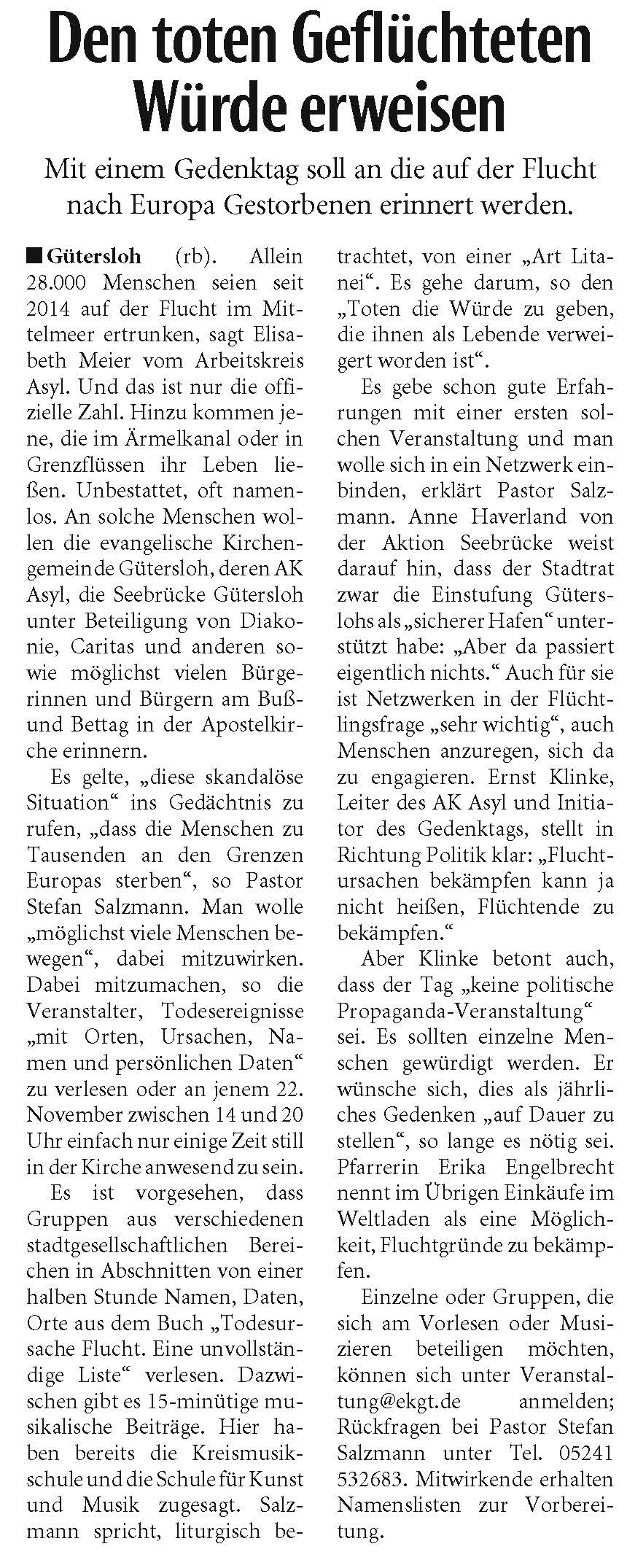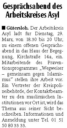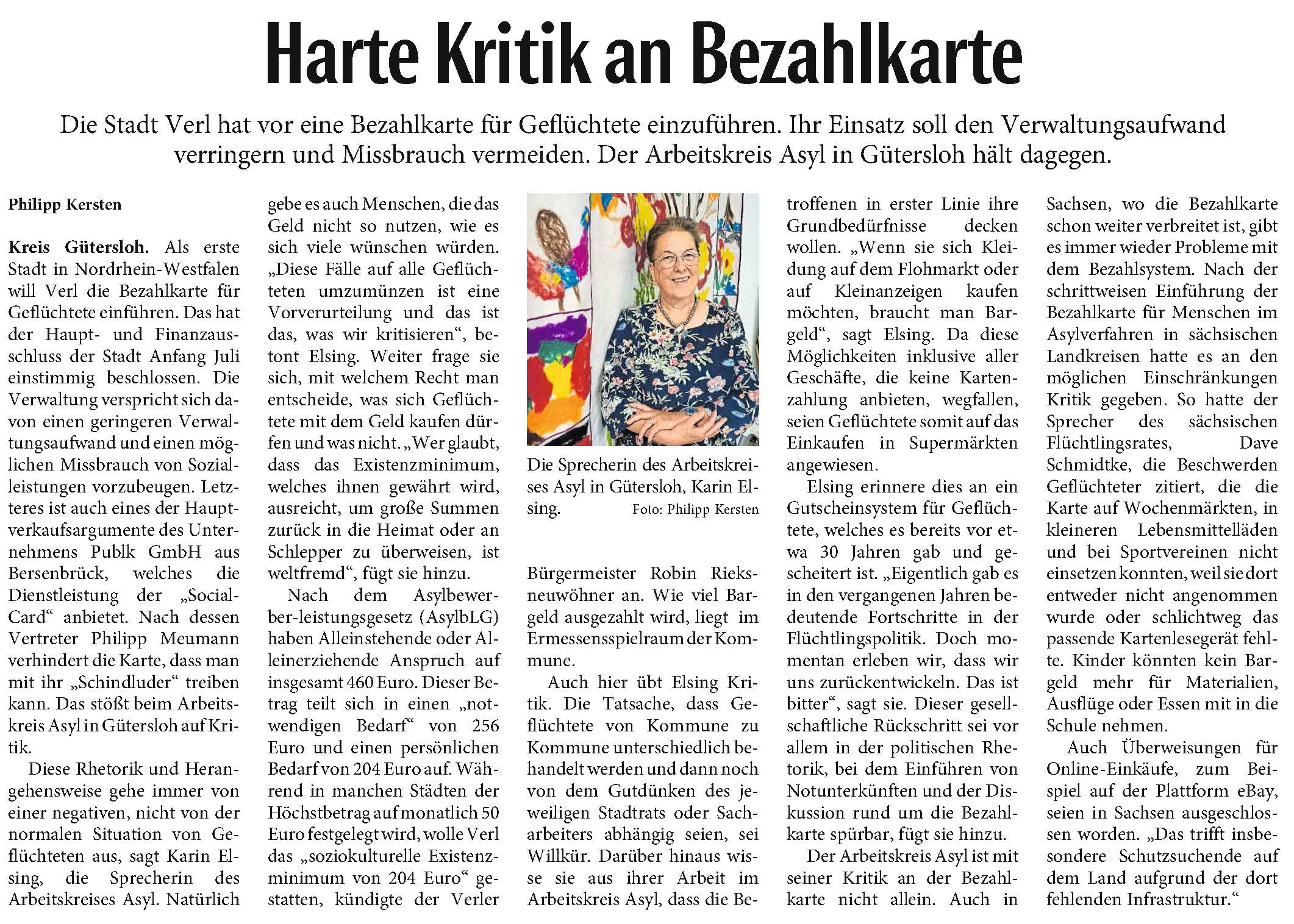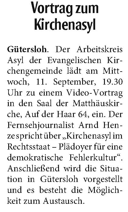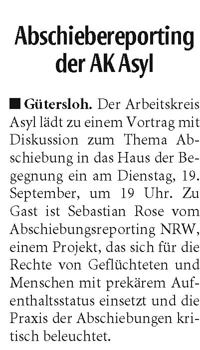 Ausführliche Informationen und Interviews u. a. mit Karin Elsing, der Sprecherin für den AK Asyl Gütersloh finden Sie unter dem folgenden Link