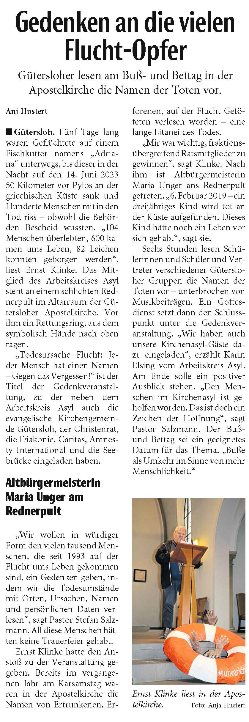 Anmerkung und Korrektur: Ernst Klinke war über viele Jahre Leiter des AK ASYL. Jetzt gibt es ein Leitungsteam. Sprecherin ist z.Z. Karin Elsing