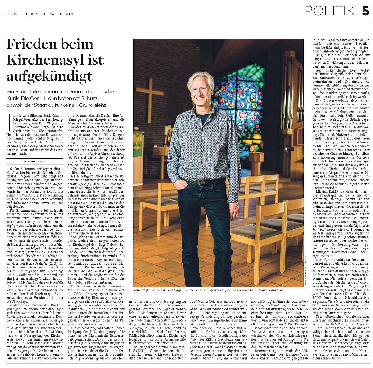 Gütersloh (gl). In einem offenen Brief richtet sich der Presbyteriumsvorsitzende und Gütersloher Parrer Stefan Salzmann an den Bürgermeister Norbert Morkes (BfGT. Es geht ihm um die Situation von Geflüchteten Seit Jahren sei es Ziel der Evangelischen Kirchengemeinde, sie zu unterstützen und ihnen zu ihrem Recht zu verhelfen. Den kompletten Artikel lesen Sie hier.