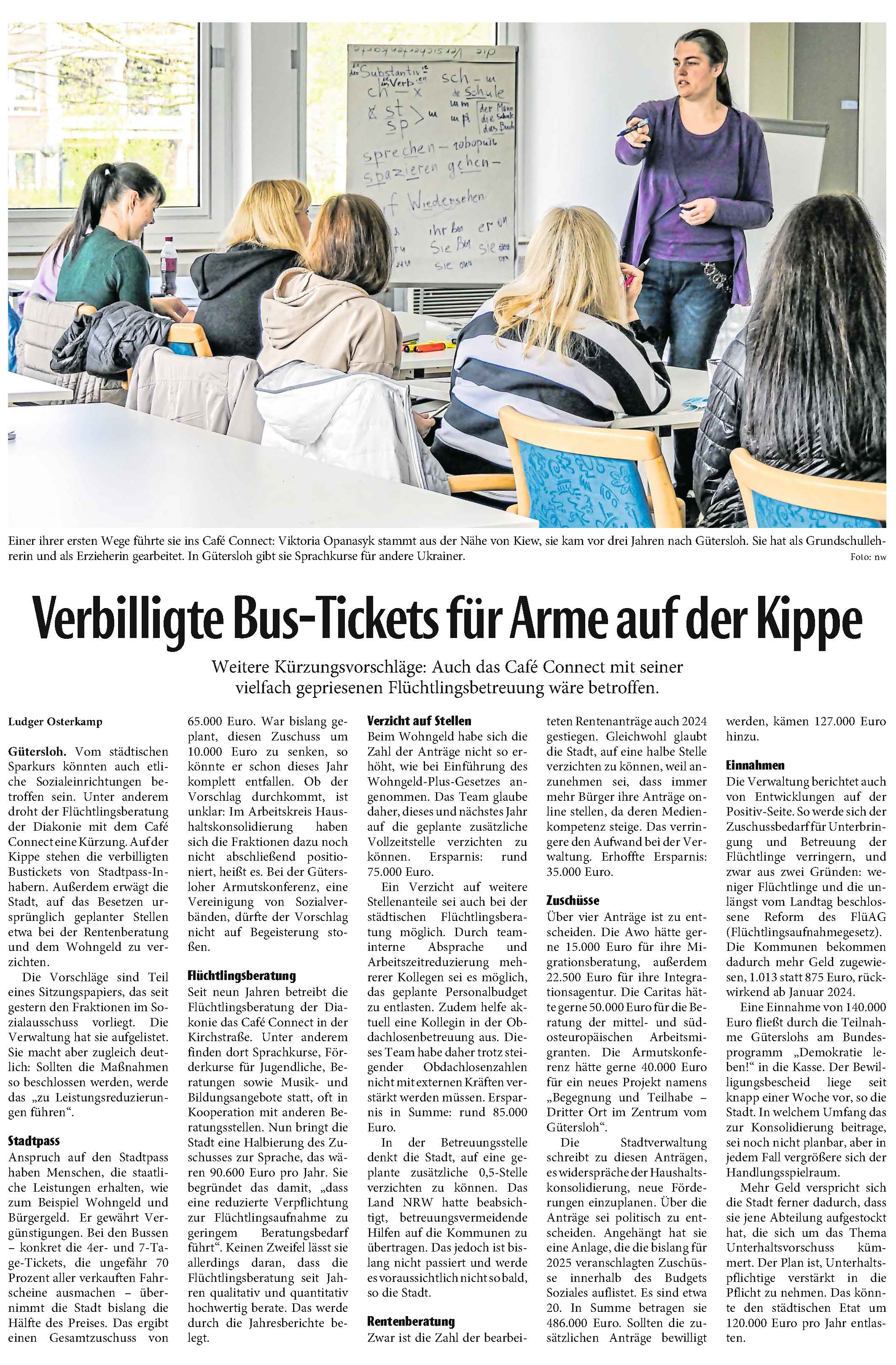 Neue Westfälische Gütersloh 18. Februar 2025 - Leserbrief zu den Sparplänen in der Stadt Gütersloh