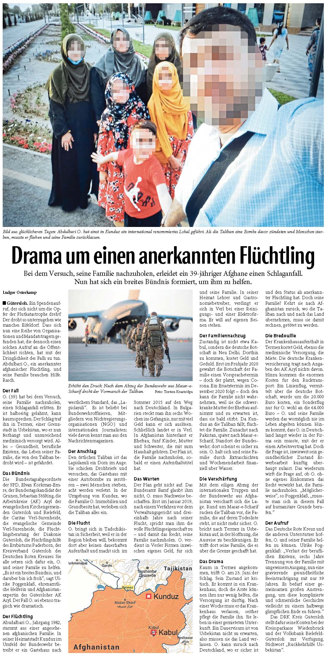 Mai 2021: Ein anerkannter Flüchtling aus Afghanistan, mittlerweile jahrelang in NRW, reist nach Usbekestan. Dort will er sich mit seiner Familie beraten - mit dem Ziel, sie ebenfalls nach Deutschland zu holen.