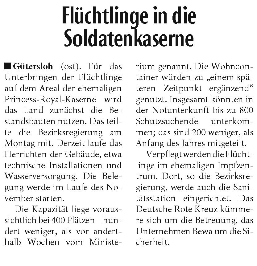 Die Aufnahmebereitschaft in der deutschen Bevölkerung sei nach wie vor groß, heißt es weiter. Einzelpersonen, Kirchengemeinden, Flüchtlingsinitiativen, Städte und Gemeinden setzten sich nicht erst seit dem Brand in Moria für die Geflüchteten in Griechenland ein. 241 Städte hätten sich mittlerweile dem Bündnis Sicherer Hafen angeschlossen. Auch Gütersloh habe sich zum sicheren Hafen erklärt und sei bereit, zusätzlich Schutzsuchende aufzunehmen.