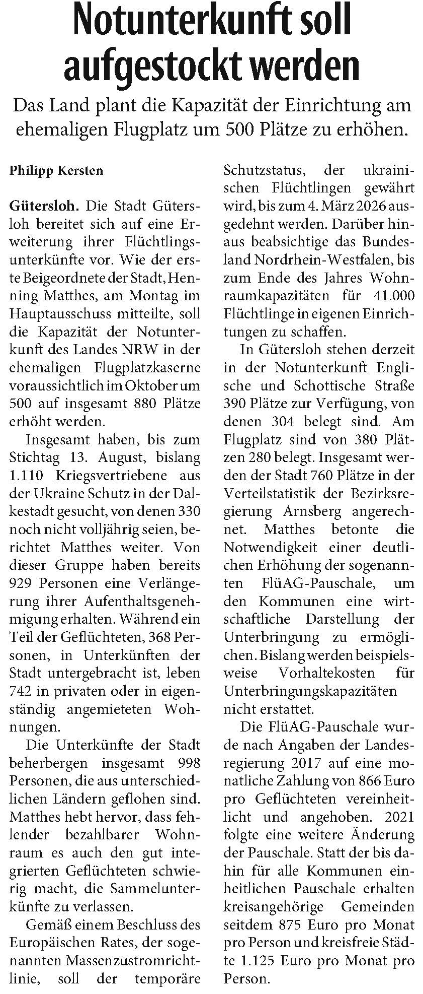 Neue Westfälische Gütersloh Dienstag 23. August 2022
