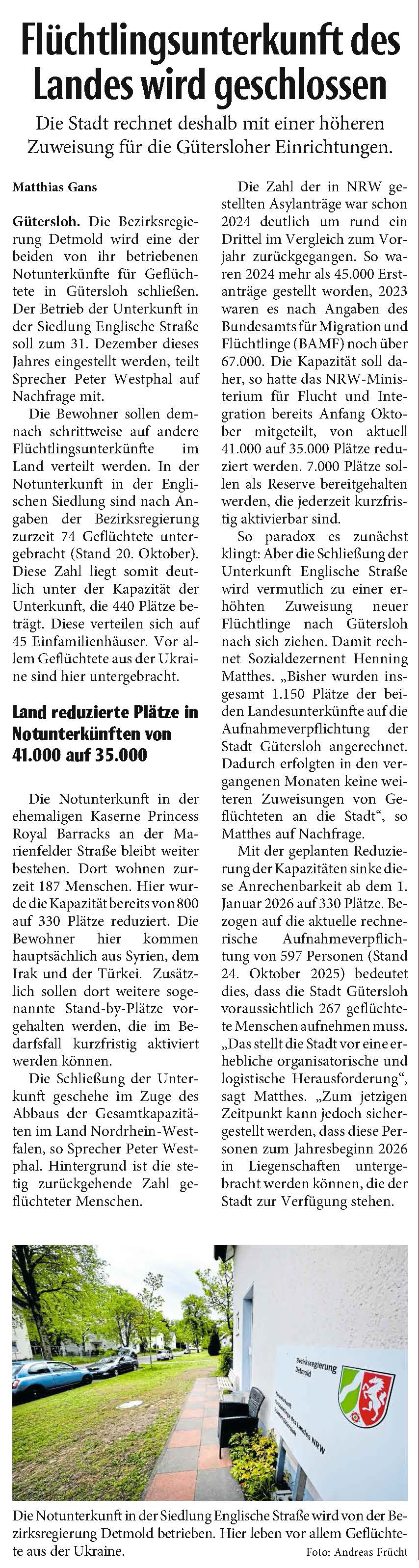 Neue Westfälische Gütersloh 25./26. Oktober 2025