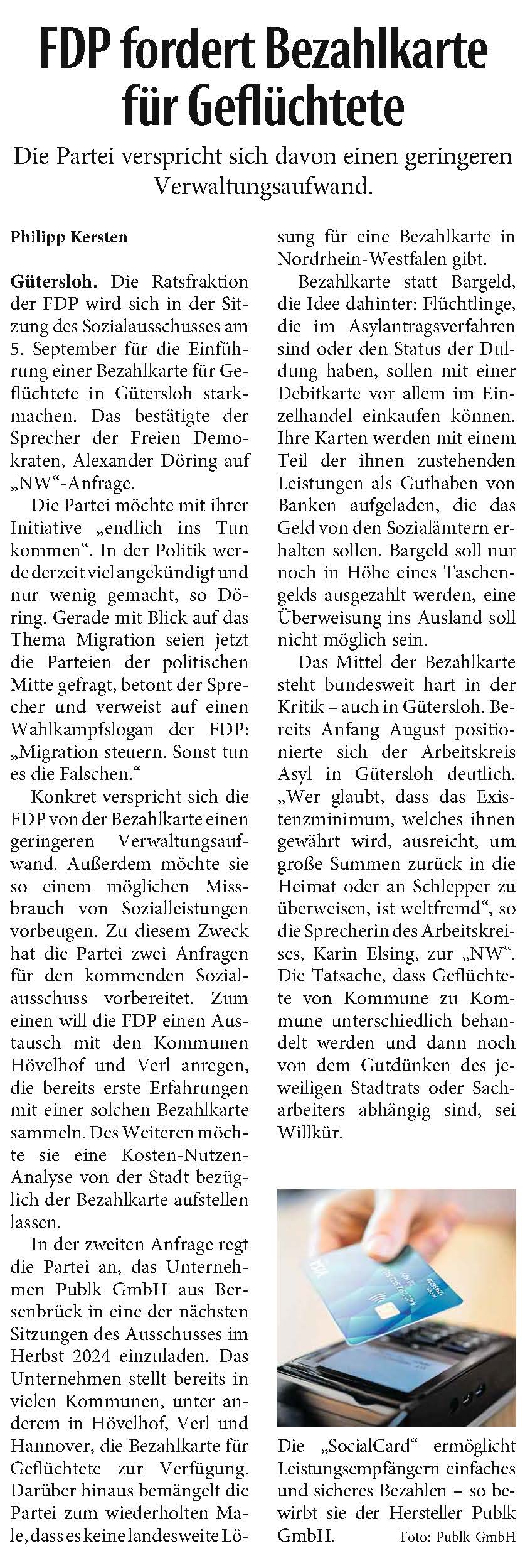 Neue Westfälische Gütersloh 23. August 2024