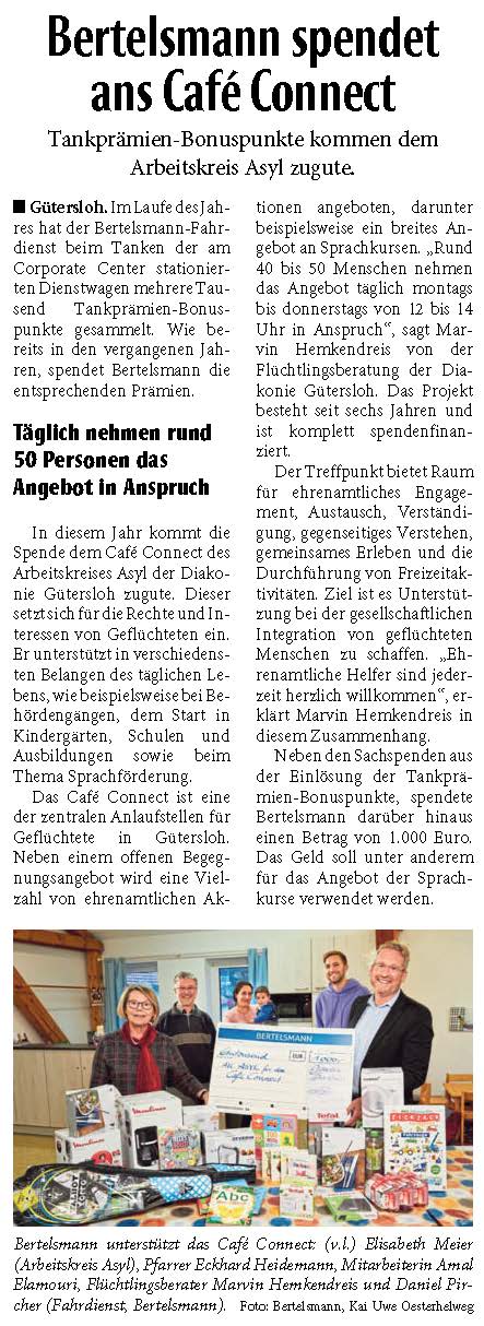 Bertelsmann spendet Tank-Prämien an das Café Connect