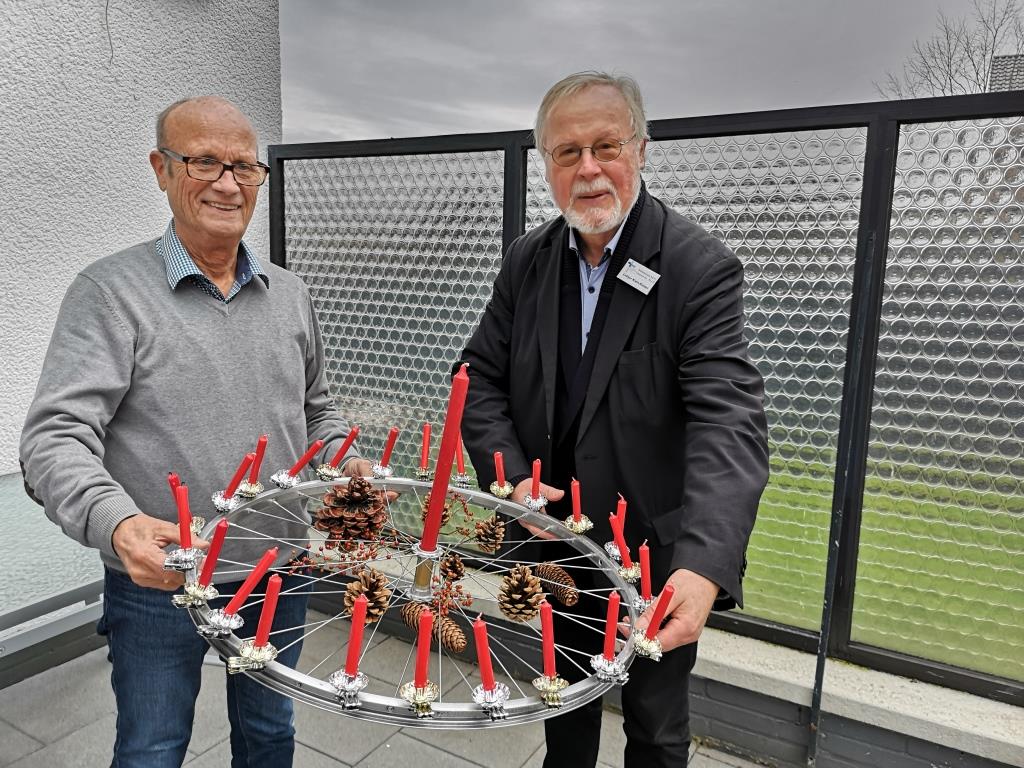 Für seine Unterstützung hat Karin Elsing, Sprecherin des Arbeitskreises, als Dankeschön einen Adventskranz aus einer Fahrradfelge gebastelt, den Mitglied Ludger Klein-Ridder dem Monteur kürzlich überreichte. „1111 Fahrräder sind es mittlerweile geworden, die uns übergeben, abgeholt, dann aufgearbeitet und schließlich weitergegeben werden konnten“, heißt es in einer Mitteilung. Der Bedarf sei weiterhin groß. „Wir freuen uns über jede Spende, egal ob es sich um ein Damen-, Herren- oder Kinderfahrrad handelt“, schreibt der Arbeitskreis weiter.